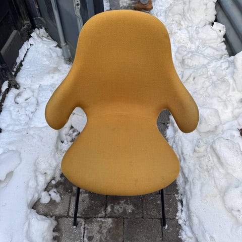 &tradition stol designet af Achille Castiglioni. Stolen har et stel i træ med krydsede ben og armlæn. Sæde og ryg er udført i hvidt lærred, som er fastgjort til stellet med beslag. Velegnet som ekstra siddeplads i stue, sommerhus eller lignende indretning, hvor der ønskes en enkel stol med lærredssæde og -ryg.