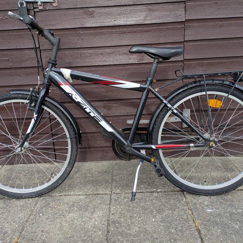 Børnecykel med 24" hjul i grå farve. Trænger til en kærlig hånd man den kan køre. 24 gear og bremser der virker