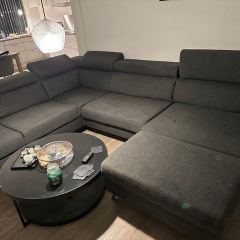 Et par mindre pletter/urenheder, men alt betræk kan tages af og vaskes og så er den som ny. Dog en lille rift i stoffet (se billede) som man ikke lægger mærke til.
