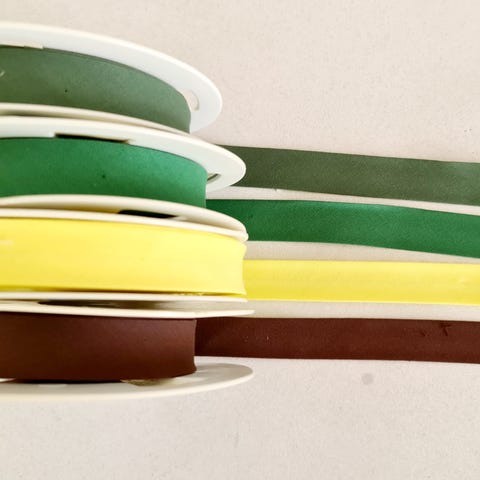 Nyt skråbånd i bomuld sælges pr meter. 25 mm bredt. God kvalitet fra Villy Jensen. 5 kr pr meter. Sender gerne.