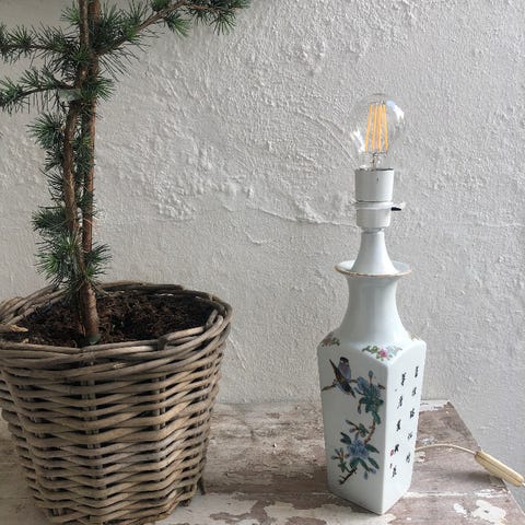 Kinalampe med fugl og dekorationer 81 cm høj