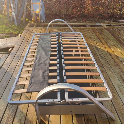 Enderne kan løftes enkeltvis, så den både kan benyttes som sofa og seng - eller til at "flyde i" som en chaiselon.