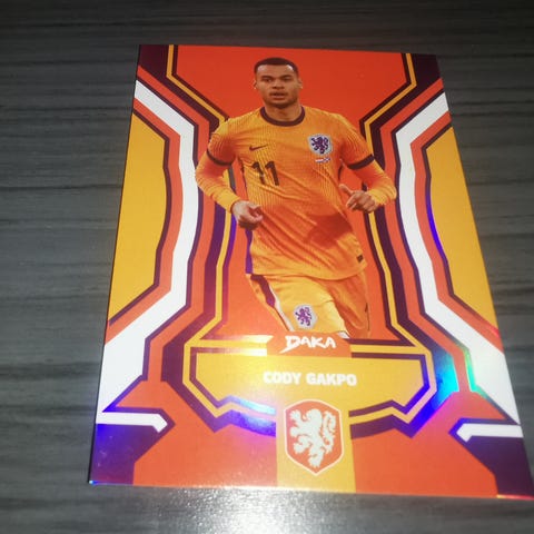 Daka Marco van Basten fodboldkort i limited edition, nummereret 39/75. Kortet viser Marco van Basten i Hollands landsholdstrøje på forsiden og har landsholdets logo samt nummerering på bagsiden. Egnet til samling af fodboldkort og memorabilia relateret til det hollandske landshold og Marco van Basten.