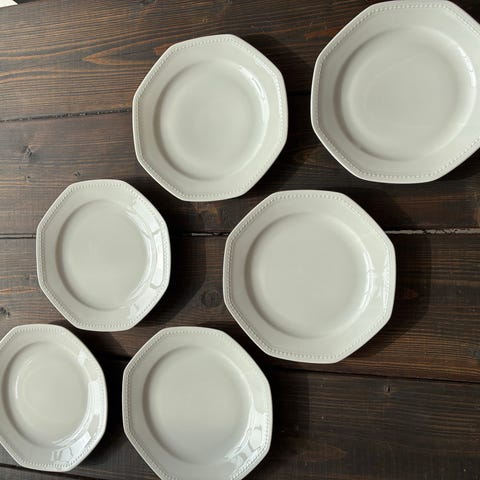 “ FORM PARIS “ tallerkener i hvidt porcelæn. Tallerkenerne har en let kantet form med diskret dekoration langs kanten. Velegnet som middagstallerkener eller til servering ved borddækning. Sælges som sæt, antal som på billederne.6 stk -Sælges kun som sæt . Dette er dybe tallerkner - Diameter 22 cm