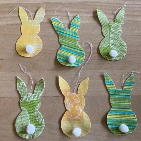 Gl fint Påskeophæng hvidt blondestof cirkel påskeharer til ophæng på Gren vindue eller væg