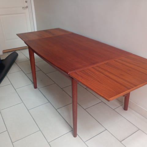 Spisebord i Teaktræ med tillægsplader fra Vejle Møbelfabrik.