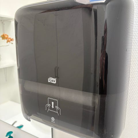 Væghængt model med monteringshuller på bagsiden til fastgørelse på væg. Egnet til brug på toiletter, badeværelser, køkkener og andre områder, hvor der er behov for håndhygiejne.