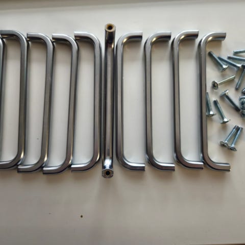 6 styk nye. Mat stål. Længde 51 cm. Hulafstand 45 cm. Samlet 600 kr.