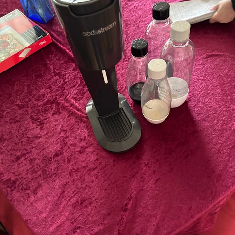 Nordic Sense sodavandsmaskine i sort. Maskinen bruges til at lave danskvand og sodavand derhjemme ved hjælp af en genanvendelig flaske og kulsyrepatron (CO2-cylinder). Designet er slankt og lodret med en gennemsigtig flaske, der klikkes på plads i fronten af maskinen. Egnet til brug i køkkenet til fremstilling af kulsyreholdige drikke efter behov.