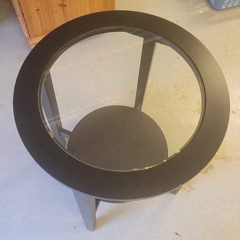 Fint rundt sofabord af glas og stål. Fejler umiddelbart intet men har dog nogle ridser i overfladen. Skal hentes hurtigst muligt i Sjællands Odde 4583.