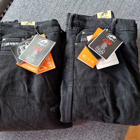 Herremodel i denim. Ekstra forstærkninger på knæ og hofter.