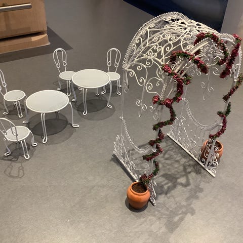 Miniature møbler , pejs med billedrammer hvid