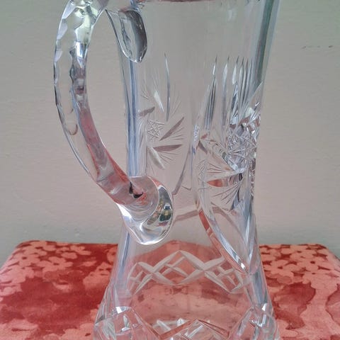 Smuk antik vandkande af massiv ægte krystal med håndskårede stjernemotiv og facetteret overflade.