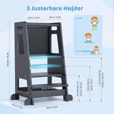 Justerbart læringstårn slim double | 85 cm | 3-trins højde.