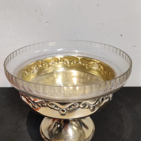 Gammel skål i sølvplet uden fejl/skål stemplet med div stempler H ca 15 Ø ca 20,5 cm
