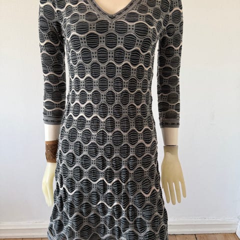 Missoni tight tynd strik bluse. Blusen er i viskose og bomuld og har sort bundfarve med karakteristiske multifarvede, vandrette striber. Italiensk str. 44, synes den svarer mere til M-L. Måler 62 cm i længden og 40 cm fra ærmegab til ærmegab. Meget fin stand.