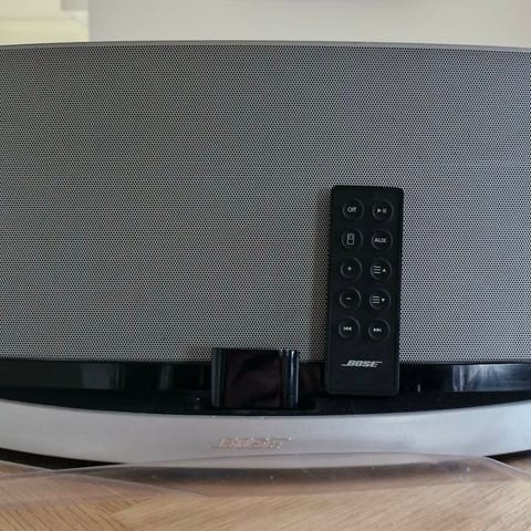 Bose sounddock 2 med fjernbetjening, lader og jack. Den spiller sindssygt godt og holder stadig godt batteri.