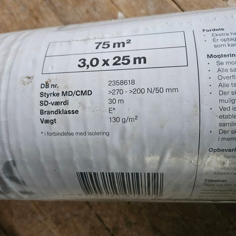 Overskud fra byggeprojekt. 2 x 11 meter med iltspærre og 9mm isolering