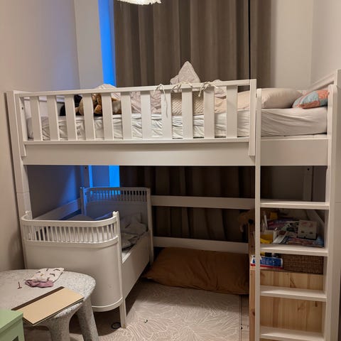 Obs: Der mangler et par gevindindsatser til sengen og en skrue til stigen. Den fungerer fint uden, men ellers kan de formentlig købes.