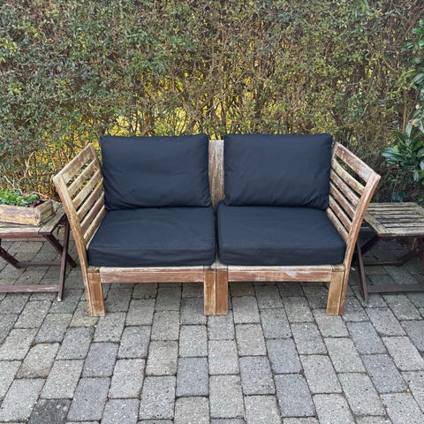 Bænk, bord og en stol inklusiv hynder sælges samlet