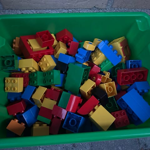 LEGO DUPLO klodser i blandede farver og former. Der er lidt af det hele.