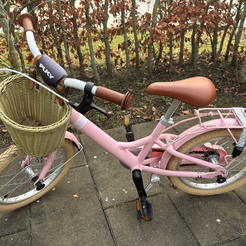 Fin begyndercykel med håndtag til forældre. 3-6 år str. super fin stand da den har stået i kælder.