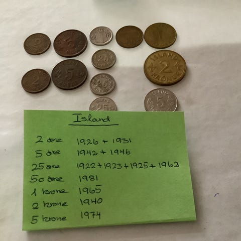 Iceland. Islandsk møntsæt, med 12 forskellige mønter fra 1946 til 1981. Forseglet! Se billederne. Iceland