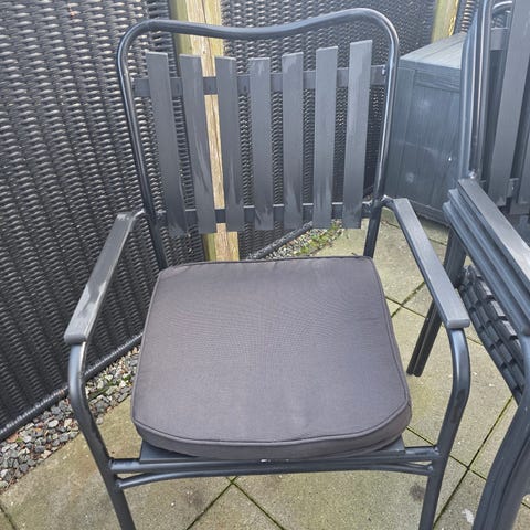 Den robuste aluminiumsramme har en diameter på 22 mm og en sort pulverlakeret finish, der giver lang levetid. Stolen har en maksimal belastning på 160 kg, hvilket gør den stabil og pålidelig. Skanör havestol er stabelbar og nem at opbevare, når den ikke er i brug.