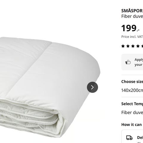 A barely-used duvet from Nordisk Fjern. Was purchased to accommodate guests, but now it's rarely used, so I decided to sell. No visible damage or stains.