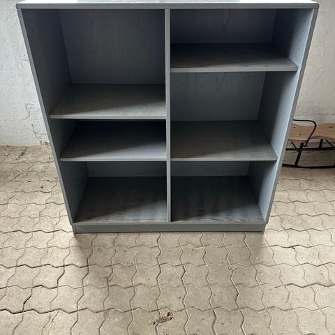 Virkelig alsidig og stilren reol i hvidmalet birk. Reolen står på løs sokkel, som medfølger, men reolen kan også hænges op.