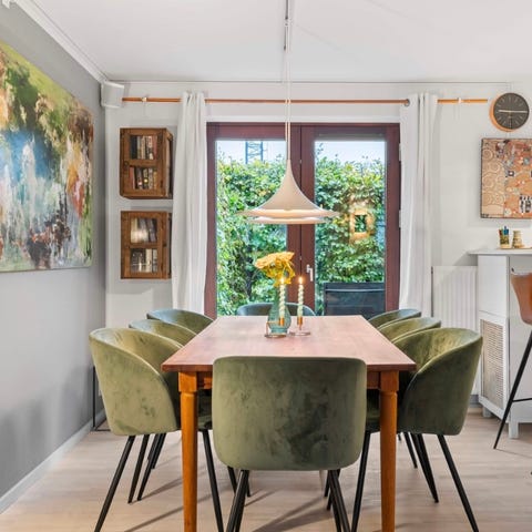 2 smukke og ultrabillige spisebordsstole med grøn velour