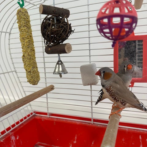 4 par ubeslægtede Zebrafinker 5 af fuglene har fast årsring 2025 der er 8 fugle i alt 50 kr parret sælges kun parvis