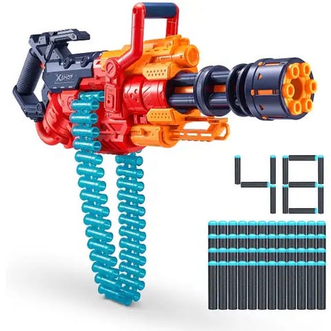 X-Shot Kickback legetøjspistol med skumdartpile. Sættet indeholder en Kickback dartblaster og flere skumpile, som kan affyres mod mål. Legetøjspistolen er egnet til leg både inde og ude, hvor man kan øve sig i at ramme forskellige mål. Designet er i flere farver med et kompakt greb, der passer til børnehænder.