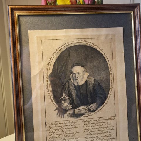 Rembrandt grafisk tryk indrammet billede sort-hvid