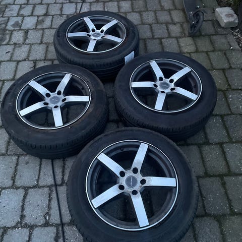 Har de her fælge to af dækkene skal skiftes og de andre to er fra 2022 mønster på de to af dem ca 7 mm ET 35