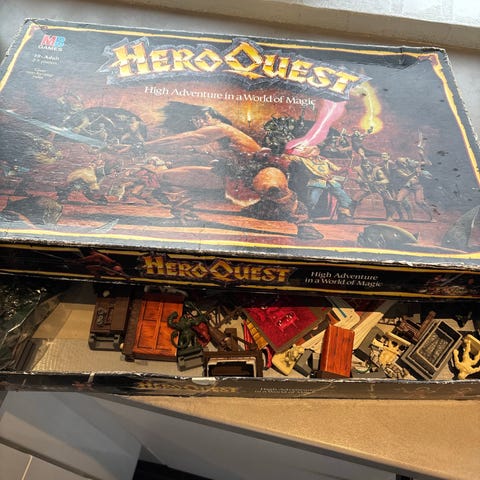 HeroQuest First Light terningesæt og dice tray. Sættet indeholder specialdesignede HeroQuest-terninger i en metalæske med vindue samt en matchende dice tray med HeroQuest First Light-motiv. Egnet som tilbehør til HeroQuest og andre brætspil, hvor der bruges terninger.