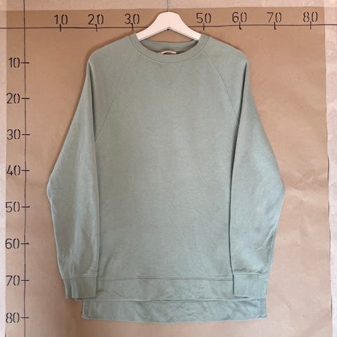 Retro 80’er lyserød sweatshirt med lyserøde ærmer og stribet midterstykke. Str m.