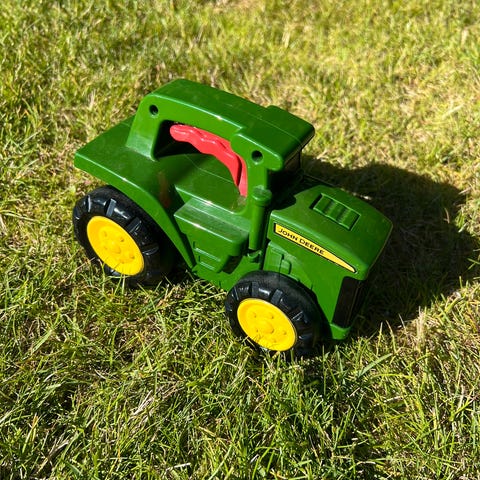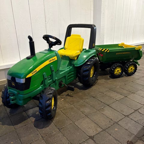 Kan leveres med lille John Deere vogn som passer 100% til traktoren. ( for 150kr ekstra )