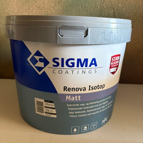 Beck & Jørgensen 10 l. iso maling, farvekode ncs 0500. Uåbnet spærrende/isolerende maling.