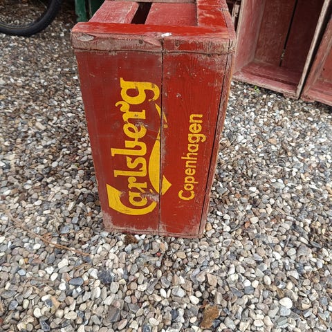 Carlsberg ølkasser i brun plast, ofte omtalt som en pensionistkasse eller skovturskasse.