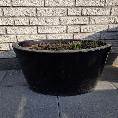 Rund krukke i beige farve. Krukken har en enkel, glat overflade og står på en integreret fod/sokkel. Velegnet til indendørs eller udendørs brug afhængigt af materiale og behandling. Kan anvendes til planter, blomster eller som dekorativ opbevaring.