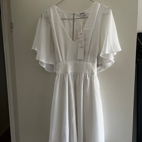 Flot, let konfirmationskjole med blonde og fin åben ryg. Brugt én gang 😊