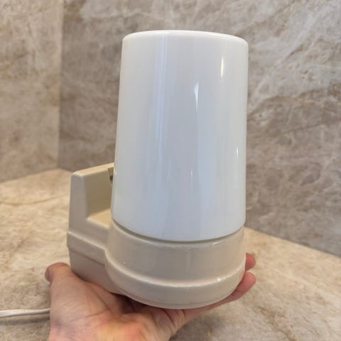 Sælger disse to utroligt smukke og tidløse lamper i hvidt porcelæn med opalhvidt glas. Lamperne er i den klassiske funkis-stil, som passer perfekt ind i både det moderne badeværelse, som natlamper i soveværelset eller som hyggelig belysning i entréen.