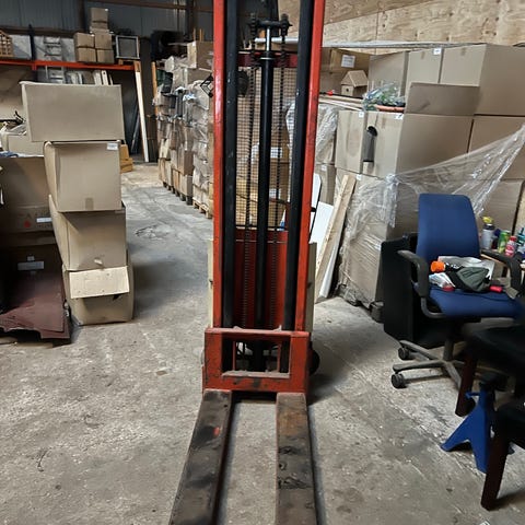 Logitrans palleløfter stablere i rød med en maksimal løftekapacitet på 1000 kg. Udstyret med gaffelben til håndtering og løft af paller og gods i lager, værksted eller lignende miljøer. Mekanisk løft med beskyttelsesgitter foran masten. Velegnet til intern transport og stabling af paller, hvor der er behov for manuel betjening og løft op til 1000 kg.