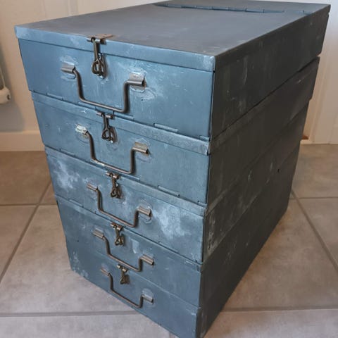 Bank Box original gammel, 1 stk smuk bankbox i metal med messing beslag.
