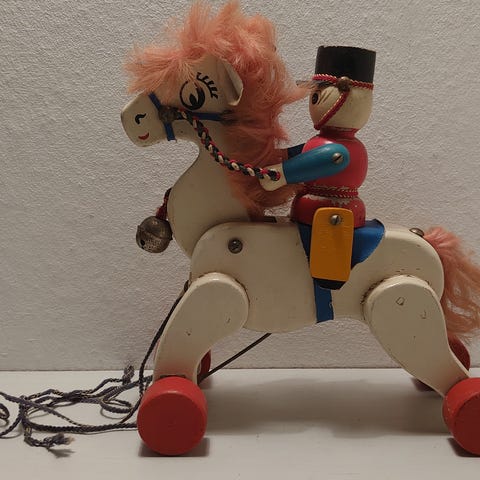 Legetøj, 2 gamle træ heste, 23 cm høj &20 cm høj