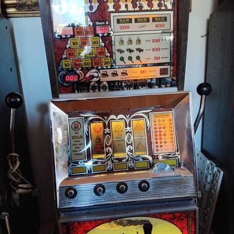 Så er det nu hvis man vil blive ejer af en enarmet enarmet tyveknægt spilleautomat spillemaskine morskabsautomat af de mere sjældne maskiner fra DAE = dansk automat expert, nemlig Road Racing. Udover de gængse gevinster kirsebær appelsiner blommer og klokker, er der også topgevinsterne :