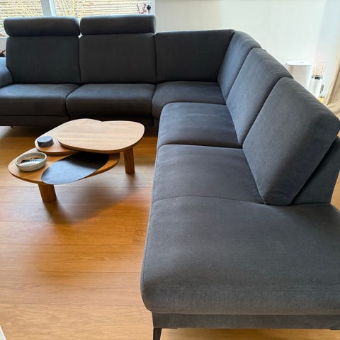 Mørkegrå hjørnesofa af mærket Hjort Knudsen. Købt i Ilva til 12.000 kr.