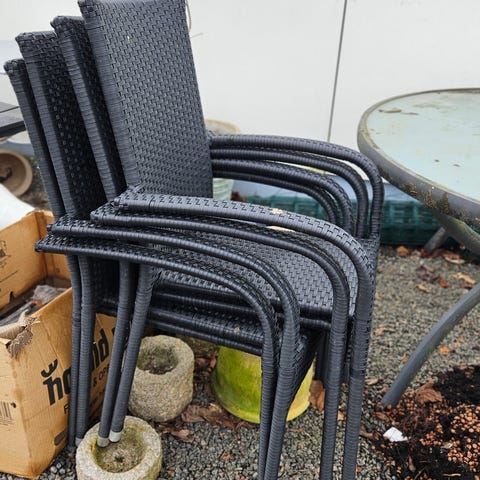 Havebord med tilhørende bænke i tralle.