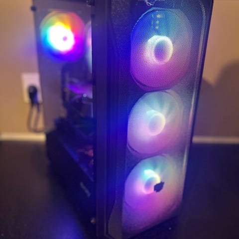 Flot og velspillende gaming PC i et stilrent kabinet med RGB-lys og god airflow. Maskinen er gennemgået, renset og klar til brug.